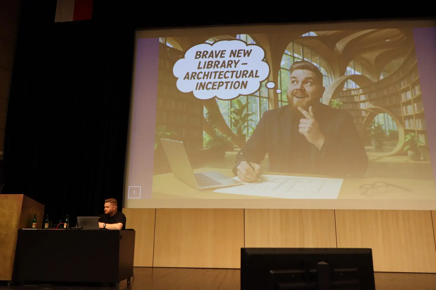 Grzegorz Kłoda ze studia GK-ATELIER ve své prezentaci Brave New Library – Architectural Inception otevřel otázku, zda knihovny zůstávají nositeli kultury, nebo se proměňují v neutrální prostory bez emocí. Jeho návrhy zdůrazňují potřebu zachovat knihovny jako místa pro umění, historii a filozofii. Ve svém pojetí architektury se proto vždy snaží najít originální myšlenku, která konkrétní knihovně vtiskne originální tvář. Důraz klade na detail, jeho architektonické studio pro knihovny často tvoří i nové názvy a vizuální identitu. V portfoliu mají například knihovnu v Lublinu plnou zeleně nebo knihovnu s prostory uzpůsobenými pro introverty nebo extroverty.
