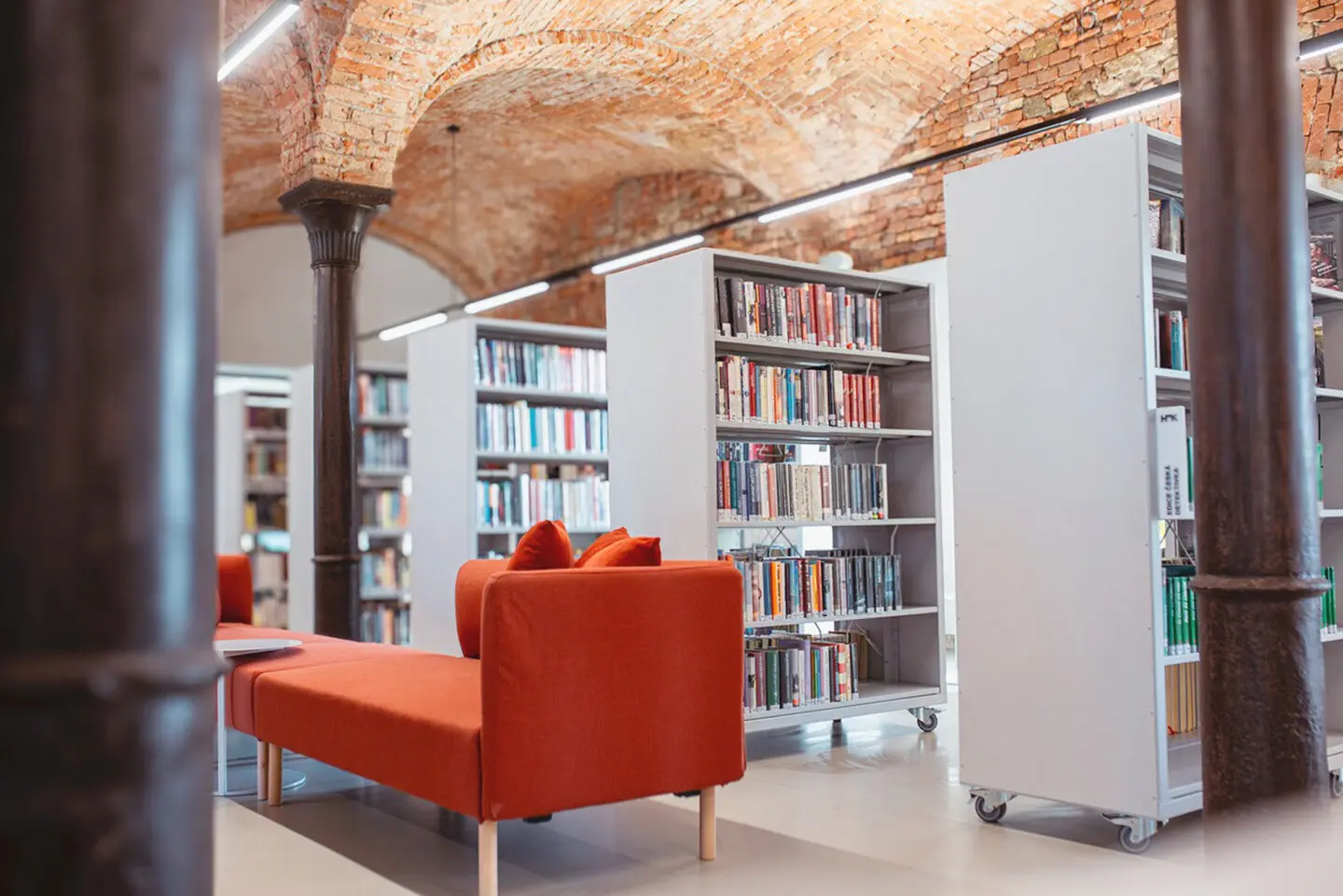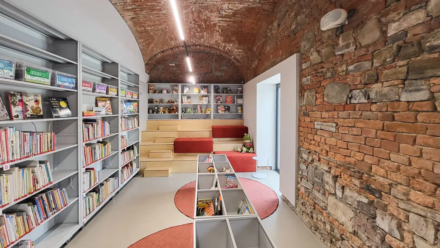 Nový prostor knihovny je výrazný zejména díky klenbám a přiznanému zdivu, což knihovně dodává jedinečnou atmosféru.